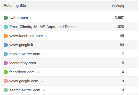 - Il 63,4 % dei clicks è stato fatto passando dal sito web ufficiale twitter.com