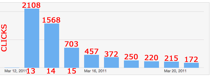 - Durante i giorni seguenti c’è un decremento marcato dei click, con un andamento quasi esponenziale, direi.