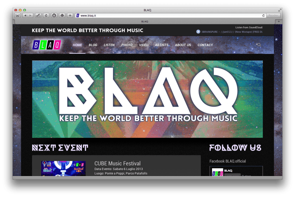 Sito per una crew di Dj. Blog, integrazione con SoundCloud e fotoalbum di Facebook.